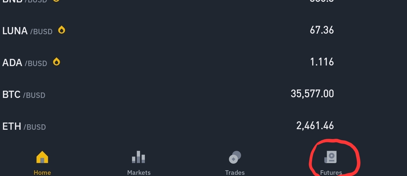선물거래를 위해 하단의 Futures 선택!