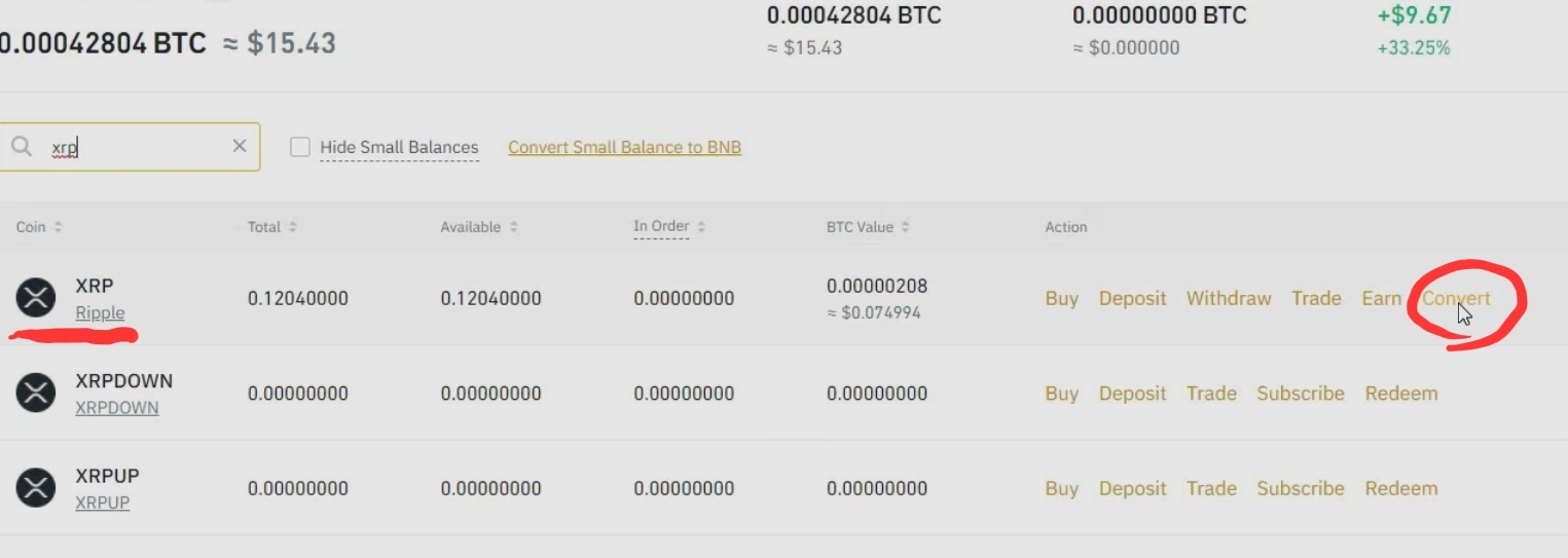 전환하고자 , 매도할 코인을 선택후 Convert 클릭